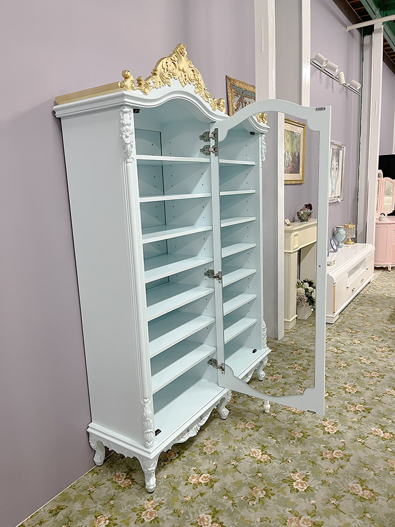 アウトレット ショーケース W77cm 高さ200cm ミントブルー&ゴールド